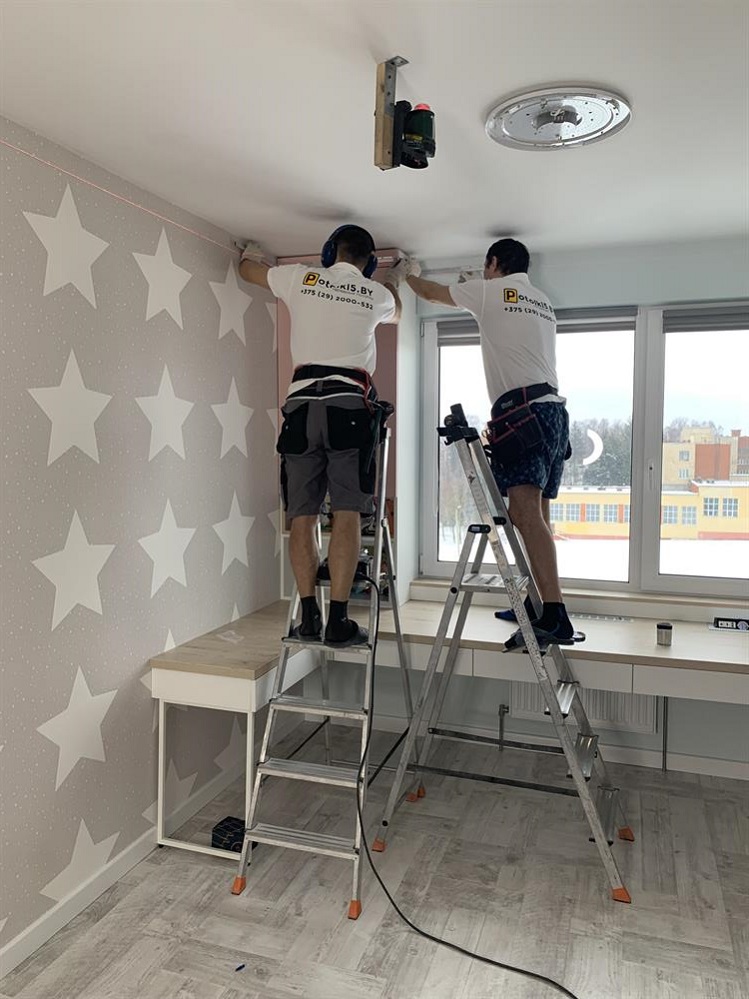 Главные преимущества: • Честные цены на сайте. Реальная цена по телефону - без скрытых доплат. • Оплата только после выполнения работы - вы ничем не рискуете. • Собственная рассрочка 2-3 месяца без банка и переплат. Доступны карта рассрочек. • Бесплатный замер уже завтра - быстро и удобно • Бригады монтажников с большим опытом: сложные конфигурации, многоуровневые решения, подсветка, «звездное небо», slott-ниши и многое другое.